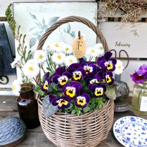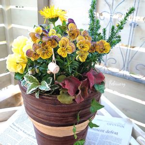 今日は久しぶりに私がビオラに夢中になったきっかけのお花屋さんへ。 もう2月だしビオラは少なかったけど100円ちょいでこんな可愛い子が残っててラッキーでした😊 デージーと寄せ植えしました☘️