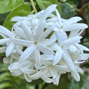 ボルネオソケイ 今朝の自宅にて咲くボルネオソケイ です。ボルネオ島が原産です。 茎は基部からよく分岐して絡みつい て伸びます。枝先に花序をつけ白い 花を咲かせます。花弁はふくよかな 芳香があります。6〜8列して星状 になり白い花を咲かせます。 原産地 インドネシア、熱帯アジア ☆*:.。. o(*´-`)o .。.:*☆❣️
