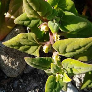 海岸の防波堤近くに咲いていた 緑の葉っぱと可愛らしい実? 🌿🌿ツルナ🌿でした。 🌿ハマミズナ科の多年草。 まだ若い実のようです💚