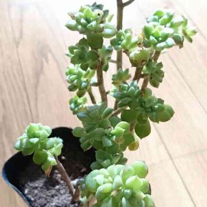 凍っ多肉を初めて触りました‼️ 本当にカッチカチ💪 挿し芽したドルフィンネックレスたちです。土や土に近い葉が凍結しました❗️夜中は雪も舞ったみたいだし☃️ 今日のバルコニー最低気温は-1.2℃ほどなので、昨日一昨日も凍ってたんだろな~😵 自然解凍してくれたのかな😃