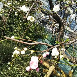 ひとつの木にふたつのいろのお花が😃✨