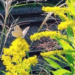 線路沿いのセイタカアワダチソウ💛🌾🌱🤗 秋らしく感じましたよ⋆⸜ ⚘ ⸝⋆ 🦋飛び入り参加
