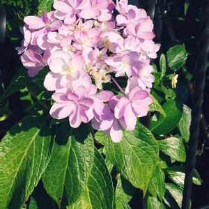 帰り道に柵からはみ出てる紫陽花にあいました(^-^) 隣りには秋色紫陽花の様に枯れた紫陽花も有ります。 この子は|ω・`)どーした? 可愛い色の紫陽花です💐