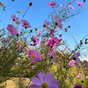 天満宮脇のコスモス 青空に映えて綺麗でした✨ "薄紅の秋桜が秋の日の〜♪" こんなの出ましたけどー(笑)
