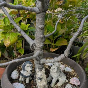 ①②③ 我流で剪定したコニファーのその後! 鉢に並べているワンちゃん🐈 ④京サラダ水菜の発芽🌱🌱🌱 🏷️ワンワン祭り に参加させて 下さいね☺️