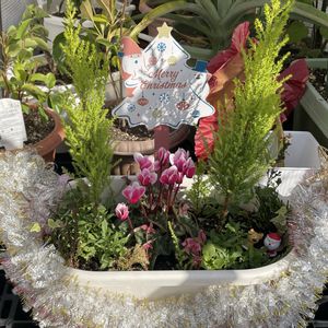 クリスマスに向けた寄せ植え 今年はコニファーを使ってツリーのイメージ チェッカーベリーに実がならなかったのが残念