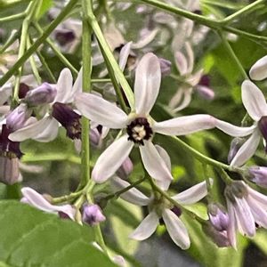 栴檀の枝が白い花を纏って風に揺れていました♪