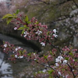 神田川の桜 七、八分咲き? 幹から花が咲いているのを「胴吹き桜」ということを初めて知った🌸