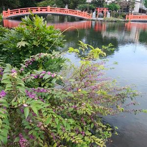 今日のお花 ムラサキシキブ 富士宮浅間神社湧玉池から流れる神田川のほとりに咲いていました 去年の今日です