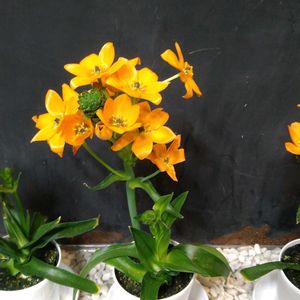 オーニソガラム💛🥰💛ダビウム 今年の新入りさん咲きました 目が冴えるはっきりした刺激的な色 花はチューリップに似てるかも 2025.3-46