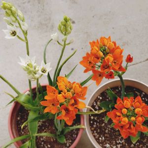 現在の2種のオーニソガラム🧡🤍 白花も咲き始めてきてくれました✨ 葉の状態が少し伸びがなく弱そうにも見えますがお花は元気に咲いてくれて良かったです 鮮やかな🧡に涼しげな🤍が一緒に見れてます💗