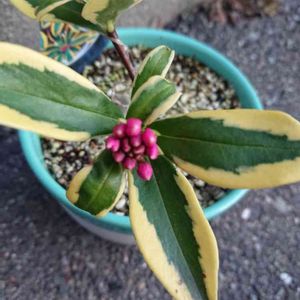 去年3月に買った 斑入り沈丁花☺️ もうすぐ咲きそう😊