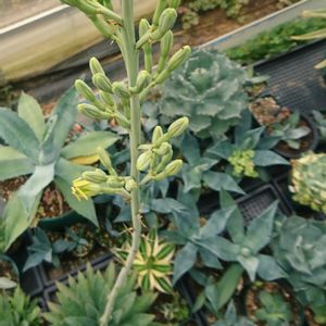 アガベの花です🌼 花茎伸びに伸びて、2m位w 親本体は、20cm位なのにwww マンフレダの花とは、花の付き方咲き方が違いますね🤔