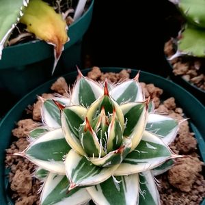 ゾロ目のpicなので、記念に息子が大事にしてるアガベをこっそり投稿(* ̄∀ ̄) お迎えしてから倍のサイズに育ったけど、まだ子吹きはしてないらしい🤔 これから紅葉で、ピンクに染まって来るのが楽しみで〜す🎶