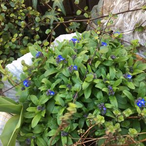 庭の隅から零れ種で飛んできたと見られる忘れな草さん💙💙💙陽当たりの良い鉢の上に☺️👌びっしりと増えて咲き始めました💓