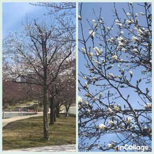 子供達と実家の母と、小雨が降る中近所の公園へ。 こちらは数日前に急に桜が満開になりました。 全然外出してないから、たまに出かけると急に街にお花があふれてて嬉しい驚きです😊