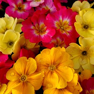 こんばんは😊 今日の3枚目は プリムラ・ジュリアン リナリア バーベナ パンジー 元気をもらえるお花達集めました🟡 🏷日曜ビタミンカラー♪