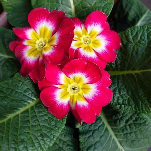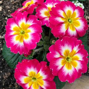 プリムラ・ジュリアン Primula × juliana サクラソウ科 サクラソウ属 常緑多年草 ( 一年草扱い ) プリムラ・ポリアンサと様々な プリムラ( コーカサス地方原産のプリムラなど )の原種を交配 させて出来た園芸品種💮💞✨ ポリアンサに比べて株は小さく なるものの、花自体は あまり 小さくなりません💕🤗✴️ 葉🌱は濃い緑色で先端が 詰まったような感じのヘラ状の 形をしています🥰💕✨ 日当たりの良い所を好みます💞 強い乾燥は苦手です😥 原 産 地 = 園芸品種 ( 中国・ヨーロッパ ) 草 丈 = 8~15 c m 横 幅 = 15~20 c m 花 期 = 11月~ 5 月 花 色 = 紫・ピンク・赤・黄色 など 10種類以上❗️ 名古屋市 瑞穂区 雁道町 雁道商店街の一角にて 📱撮 影 💠 2020年🎍1月 4日 10時 27分