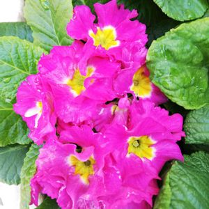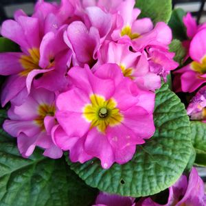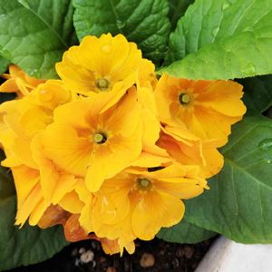 ~プリムラ・ジュリアン~です💛 鮮やかな彩りで咲いています💗 明るく元気になります✨💓✨ 庭の鉢物を避難してたら、 彩りのない殺風景になったので、 耐寒性のある💠を鉢植えしました🎵