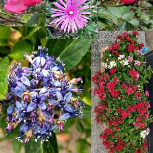 医院と薬局、隣の病院の花達をコラージュしてみました😁🎶 上から、バラ、アンジェラ マツバギク、青いアジサイ、赤いペンタス、そしてビオラやプリムラ・ジュリアン、ユーフォルビアの寄せ植え。 🏷️19日はピンクの日! 🏷️美しく青きドヨウ 🏷️おしゃれな土曜日♪ 時間がかかり過ぎて、家族は皆出掛けてしまいました。 雨降ってきたどー‼️😁