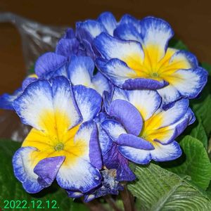 プリムラ・ジュリアンのバラ咲きジュリアン品種のイエローピンクの花 2022-12-19