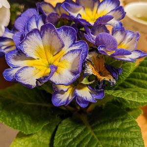 春の花、プリムラ ジュリアン 青い花も寄せ植えに💙 少し紫っぽい青いお花で、赤やピンクの花たちの中で 引き立て役にもなり、この花自身も輝く存在になります