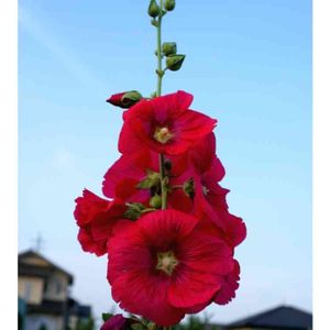 Tachiaoi under Blue Sky 🌺🌿☀️😃 梅雨で、毎日、雨が降り続き、青空が恋しいので…。🌺🌿🏞️☀️😍 タチアオイは青空がよく似合う。夏のカンカン照りの中で咲く姿が想い浮かぶ。夏よ、来〜い。ヨロシコ❗ 👍👍🌺🌺🌿🌿🏞️🏞️☀️☀️😄😄👻👻