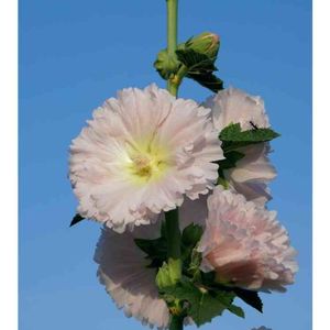 Tachiaoi under Blue Sky 🌼🌿☀️😃 梅雨で、毎日、雨が降り続き、青空が恋しいので…。🌺🌿🏞️☀️😍 白系のタチアオイ、青空に負けそう…。抜けるような白なら、張り合えるのに…。🌼🤔 まあいい…。早く夏を運んでくれ〜ッ。ヨロシコ❗ 👍👍🌼🌼🌿🌿🏞️🏞️☀️☀️😄😄👻👻
