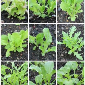 Leaves of Autumn vegetables 🌱🌿 秋野菜の成長が進み、それぞれの特徴が見えて来た。👀😋👻 ↖️ サニーレタス、少し葉が色付いて来た。 ⬆️ フリルレタス、葉の縁が少しチリチリになって来た。 ↗️ ロメインレタス、長い葉が伸びつつある。 ⬅️ サラダ菜、柔かい葉が広がりつつある。 🔹 焼肉レタス、初めてなのでよう分からん。 ➡️ 春菊、菊に似た葉が出て来た。 ⬅️ 水菜、葉がトゲトゲになりつつある。 ⬇️ 青梗菜、葉に特徴が出つつある。 ↘️ 小松菜、青梗菜と似ているが、少し違う。 あと2週間で、食ってやるぞ。待ってろよ。😍😋😂