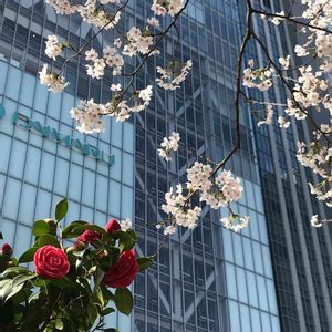 椿と桜のコラボ✨ 東京駅前にて。