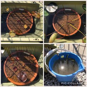 睡蓮 ペリーズスーパーレッド*サニー・ピンク ダーウィン*ハス まだ花芽は上がって来ない➰ 今年こそは花が見たいよ~🙏