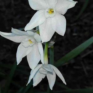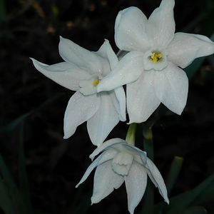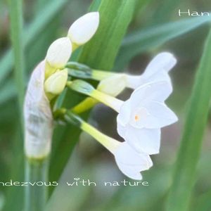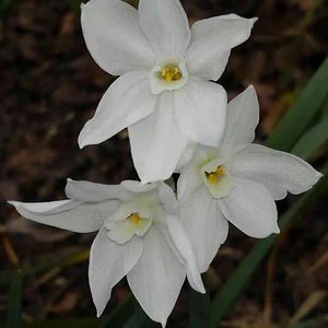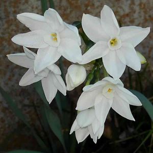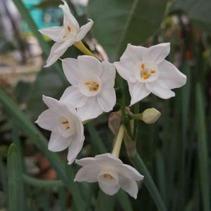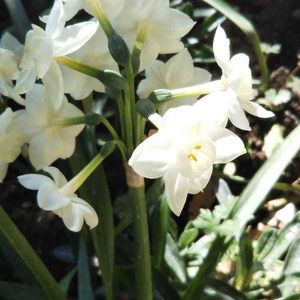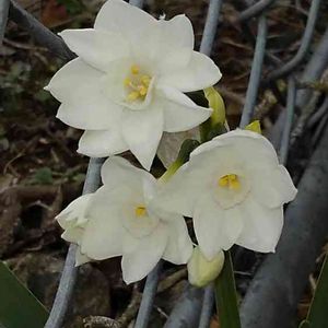 職場近くで ナルキッスス パピラセウス ペーパーホワイトと呼ばれる数少ない種の1つである水仙パピラセウスは、ギリシャからポルトガル、モロッコ、アルジェリアまで、地中海地域に自生する多年生の球根植物