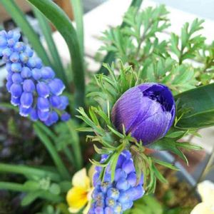 白のムスカリ探してたら 棚の一番下の隅っこに…… 1鉢に10個植えてあって150円(^w^) 白じゃないけど、買い~🎵 なかなか可愛いじゃない💕 パープル投稿に参加しまぁ~す🎵
