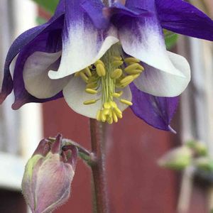 いつのまにか、たくさん咲いていた💜 いいお天気☀️ 暖かいもんね〜〜😆 ムラサキのオダマキの花 白がアクセント💜 うつむいているから、撮影が難しい! 何枚も写して、いちばんいいのがこれ🎵