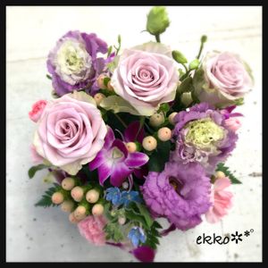 涼しげに可憐なアレンジメント ちょっと珍しい色のバラが入荷 田舎の花屋ではあまり好まれない シックより可愛くとか明るく… って言う注文が多いのよ(*^^*) 週末は夏日なんですって!? 日焼け対策に水分補給で ( ´͈ ॢꇴ `͈)੭ु⁾⁾·°˖ᔆᵘᵗᵉᵏⁱ✧˖°な週末に