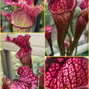 夢の島熱帯植物館(臨時休館中) 食虫植物サラセニア こちらの色合いもとても素敵です。 ステンドグラスの様に見えます❣️