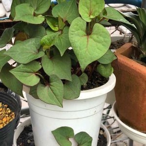 まるで鉢の模様の様に伸びて来ました。 八重咲きのドクダミですが強くてたくましい❣️ 綺麗なお花が咲きますが匂いがね〜😣