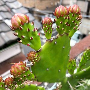 剪定され捨てられていたウチワサボテンを育て始めてから初めてツボミが付きました。 今朝数えたら70個! 親サボテン🌵のお花も凄かったけど こんなに元気に育ってくれて嬉しいです❣️