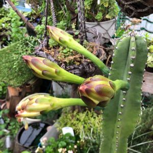 今朝の柱サボテン❣️ ツボミが膨らんでいます。 今晩、咲きます! 一つは昨日咲いていたようで萎んでいます。