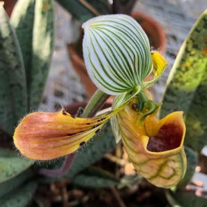 今日のお花 パフィオペティラム 渋い色合いです❣️