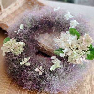 アンティーク紫陽花とスモークツリーのスワッグ🌱🌸🌱 紫陽花凄く綺麗な色です。