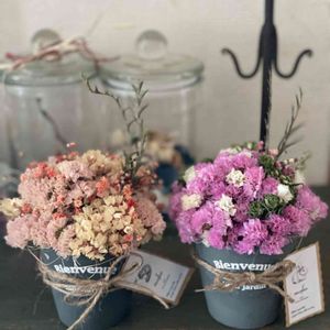スターチスのセメント鉢アレンジ🌼🌸🌱2つ並べると可愛い🥰