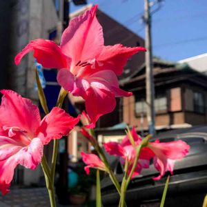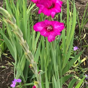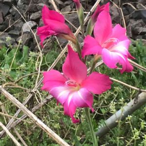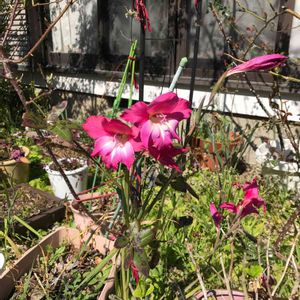 こちらも見分けるのが苦手な百合の形をしたお花… この時期に咲くコチラはなんでしょう…? →春咲きグラジオラス…って教えて頂きましたー(^O^) 春咲き…とかって、分からないですねー😅
