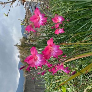 何か月前に球根で植えたのですが名前がわかりません😅 ピンクで可愛い🎵🌷です。