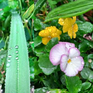おはようございます✨ 雨の水曜日 ビオラには恵みの雨😁🎶 🏷️水滴の水曜日 参加しますね‼️😁 春咲きグラジオラスも元気ハツラツ‼️