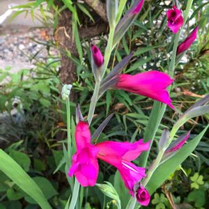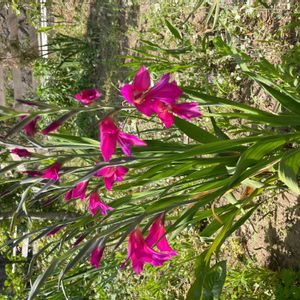 春咲きグラジオラス やっと咲いた❗️😆 秋植え球根の中で 一番先に芽がでたのに ず~っと葉っぱだけ☹️ まぁちゃん心配で お花まだですか~ って、 毎日毎日撫でてたの知ってる? 何だか去年より大きくなったみたいね😍 来年はもっと立派になるかも🎵