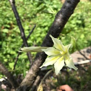 ユリのような雰囲気ですが時期が少し早いようです 背丈は60cm程度で花は5cmくらいです