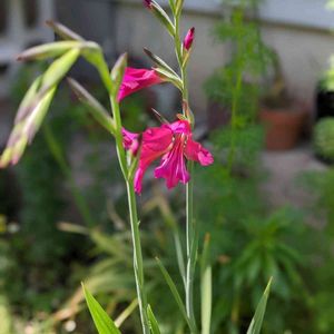 《その葉の尖ったところが名前の由来》 夏花壇を彩るポピュラーな花の一つです。横向きに整然と並んで次々に咲き上がる様子は壮大で、花壇の中でも特に目を引きます🤗🌸 すらりと伸びた花穂と剣のような形の硬い葉が特徴で、学名のグラジオラスはラテン語で「小さな剣」という意味があり、葉や蕾の形からつけられています🤗🌸 「君の名は」