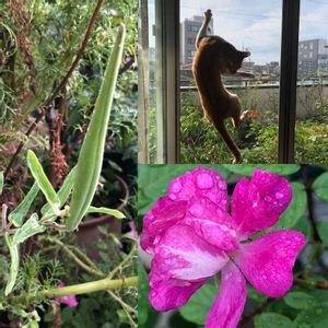 ブルースターの種 オクラみたいですね😄 うちのおバカ猫ちゃんが、網戸にぶら下がってる🤣 薔薇は一輪だけ咲いてた、ラベンダーフレンドシップさん💕