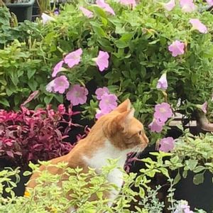 お花の中にムーちゃん💕 見つめる先にスズメ きゃー❗️逃げて〜😱 ハンターなのよ〜